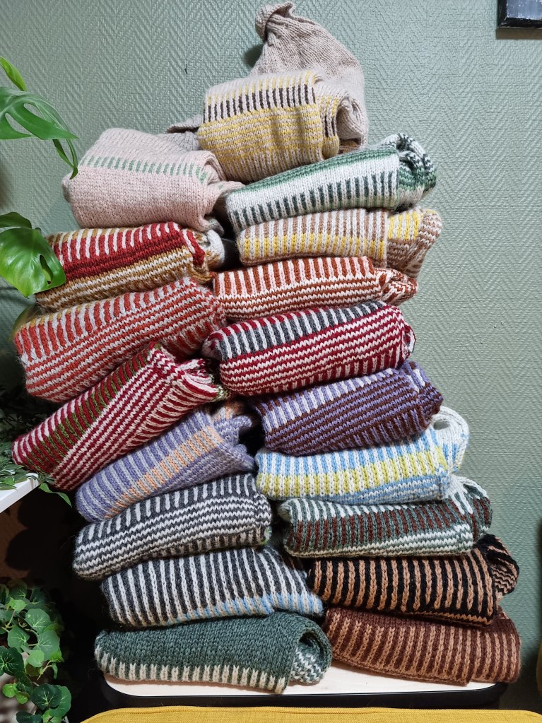 Vinter/vår 2023 ble det igangsatt et prosjekt: Åmtanke til Ukraina. Flere titalls Åmtankegensere ble strikket av folk rundt i hele Norge, og videresendt til Ukraina i samarbeid med Ukrainsk Forening Øst-Norge. Bildet viser et lite utvalg av de over 80 gensere som kom inn. Nedenfor vises noen av dem fra Ukraina.